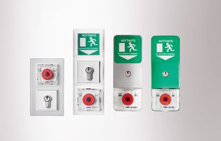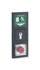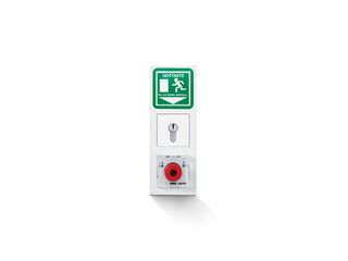- Flächig bedienbare Schlaghaube ermöglicht in Paniksituationen schnelle und sichere Betätigung der beleuchteten Nottaste